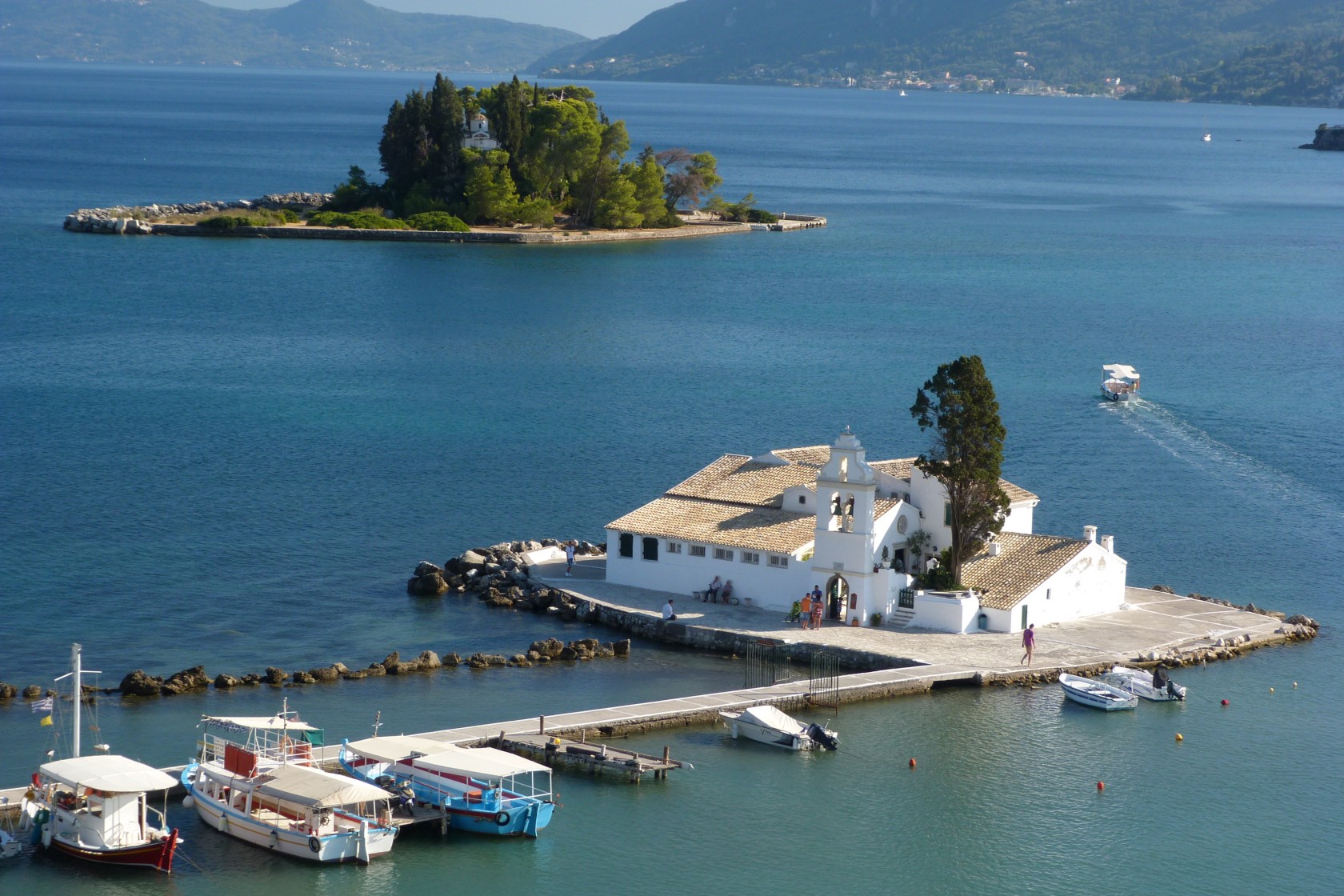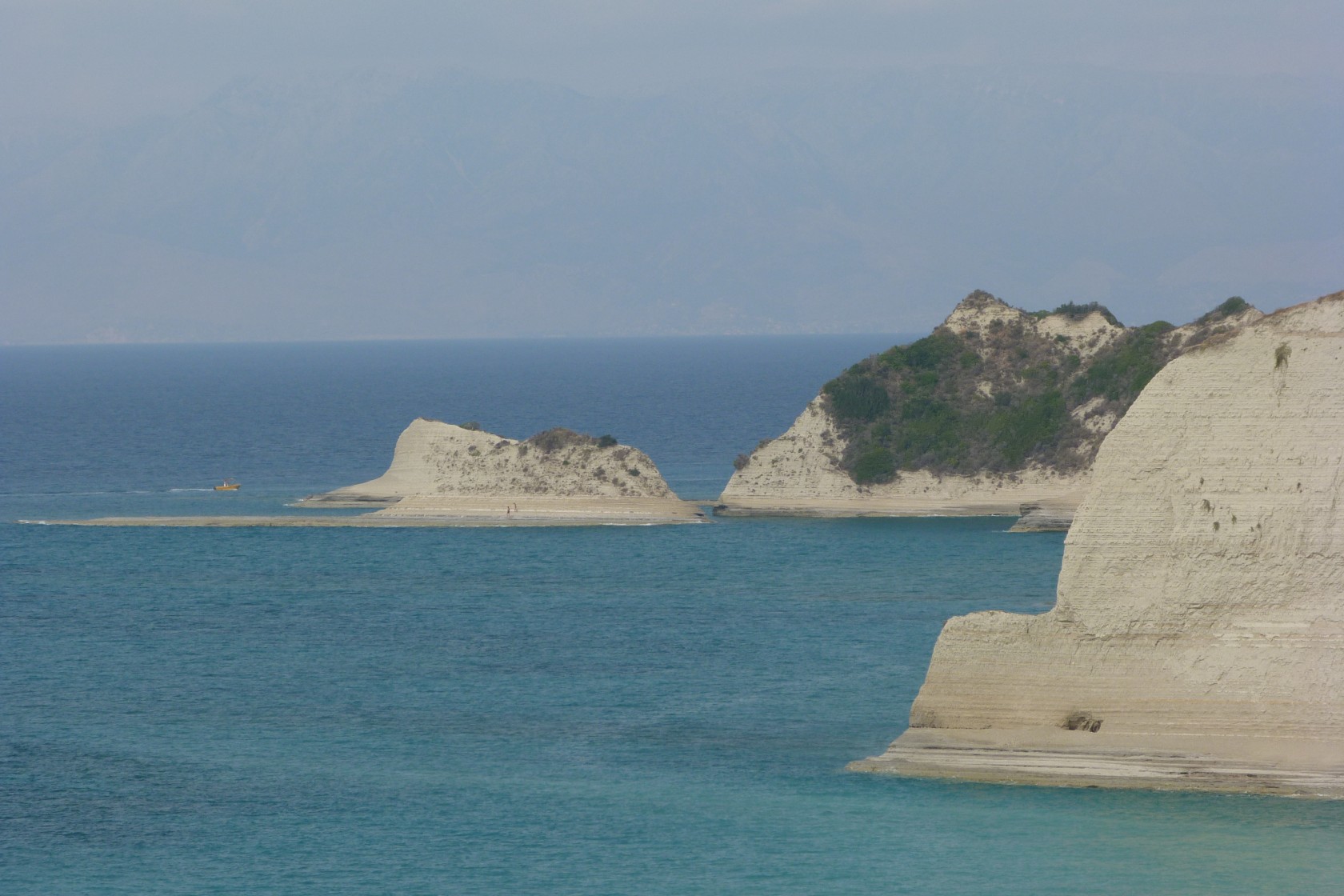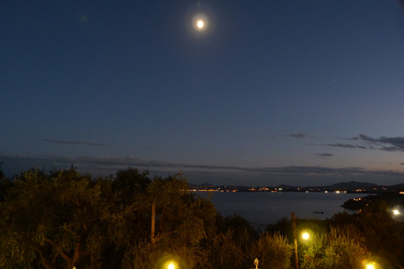 Die beiden Panoramafotos zeigen einen Blick auf Korfu-Stadt (oben) und auf das albanische / griechische Festland (unten).